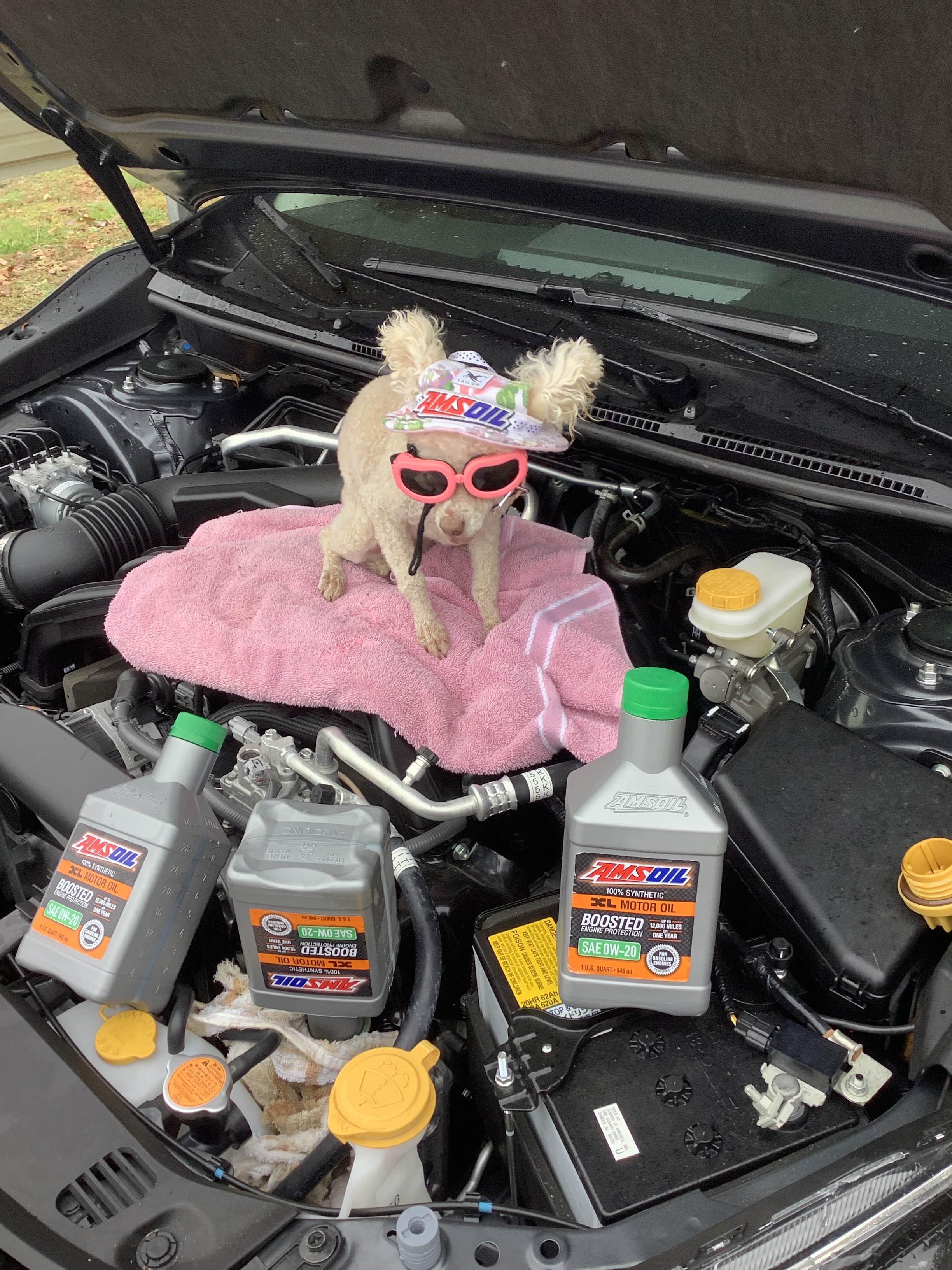 Meet Callie, she is the supervisor. she ensures that only the highest quality products are used in every service she oversees. She is ensuring this Subaru Crosstrek gets AMSOIL X.L. oil and will have a long life.